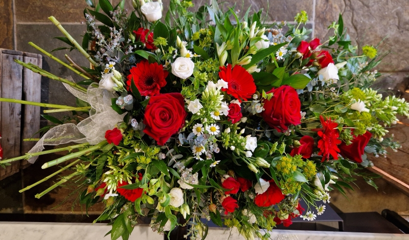 Each spray is made by our florists with care and sensitivity to honour your loved one. Flower varieties and colours may vary depending on seasonal availability.