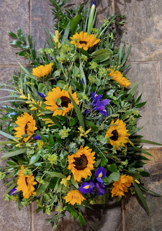A beautiful teardrop shaped tribute, the single ended spray is a versatile design suitable for both funeral services and memorials. Arranged with fresh seasonal flowers and foliage in a colour palette of your choice, this tribute offers a softer, more compact alternative to a full casket spray.